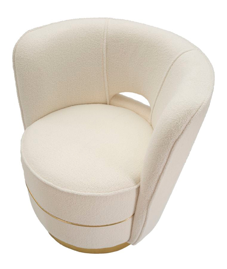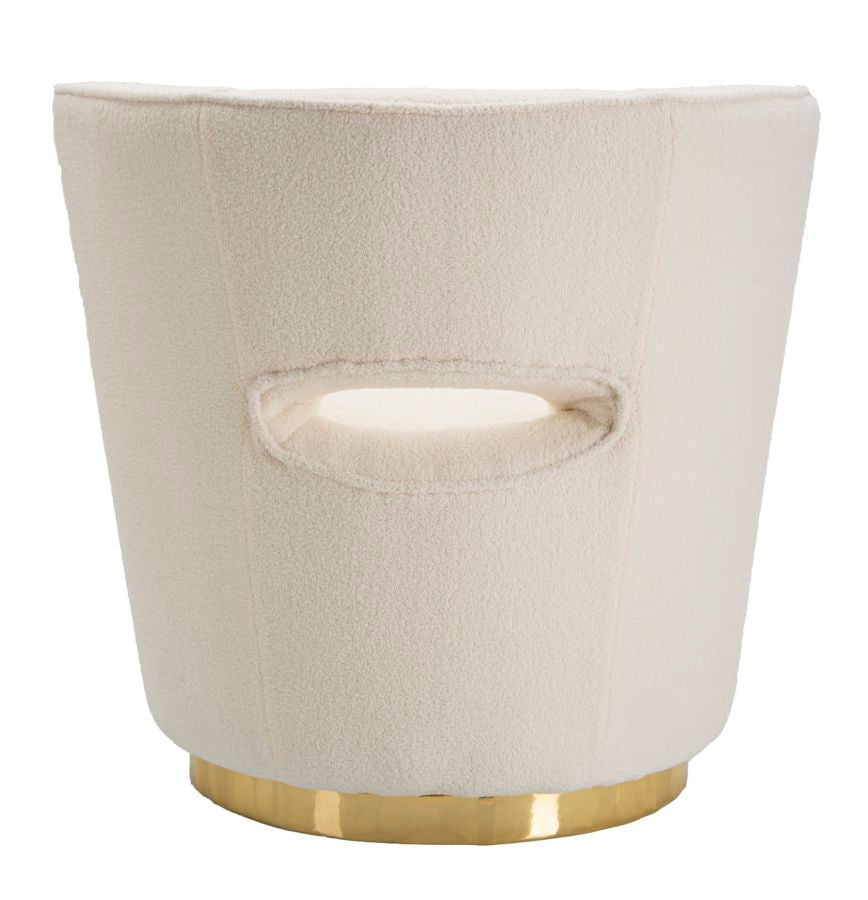 Questa poltroncina rotonda in tessuto imbottito è un complemento elegante e raffinato per arredare qualsiasi ambiente. Le sue linee semplici e moderne si coniugano perfettamente con le decorazioni dorate, che le conferiscono un tocco di lusso e glamour. Il cuscino incluso garantisce un comfort ottimale, permettendo di godere appieno di momenti di relax.