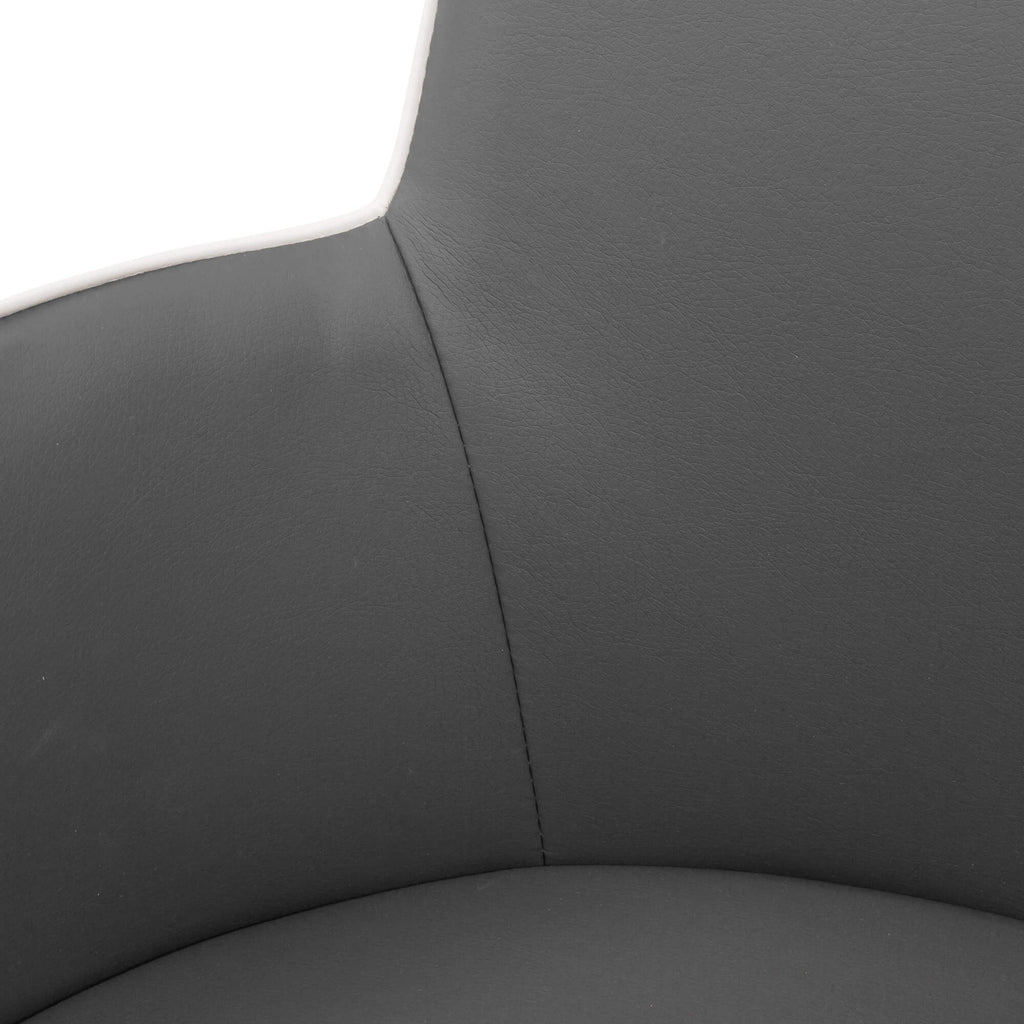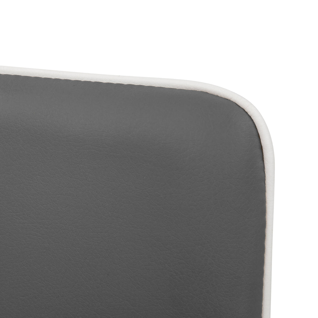 - Grauer Kunstlederbezug mit weißer Kunstleder-Besatzkordel
