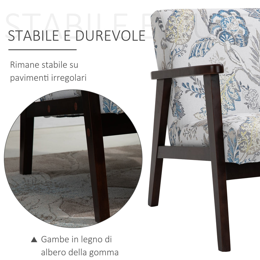 Gepolsterter Sessel 68,5x78,5x75 cm aus Holz und Kissen mit Blumenmuster