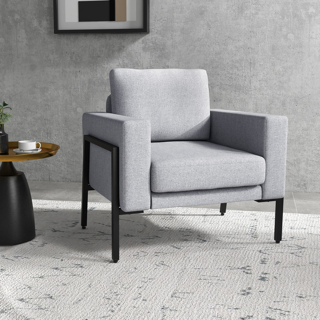 - ELEGANZA PER I TUOI SPAZI: Grazie alla superficie in tessuto effetto lino grigio e alla struttura in acciaio nero, la nostra poltrona moderna saprà dare un'aura di eleganza e stile al tuo salotto con la semplicità che la contraddistingue
