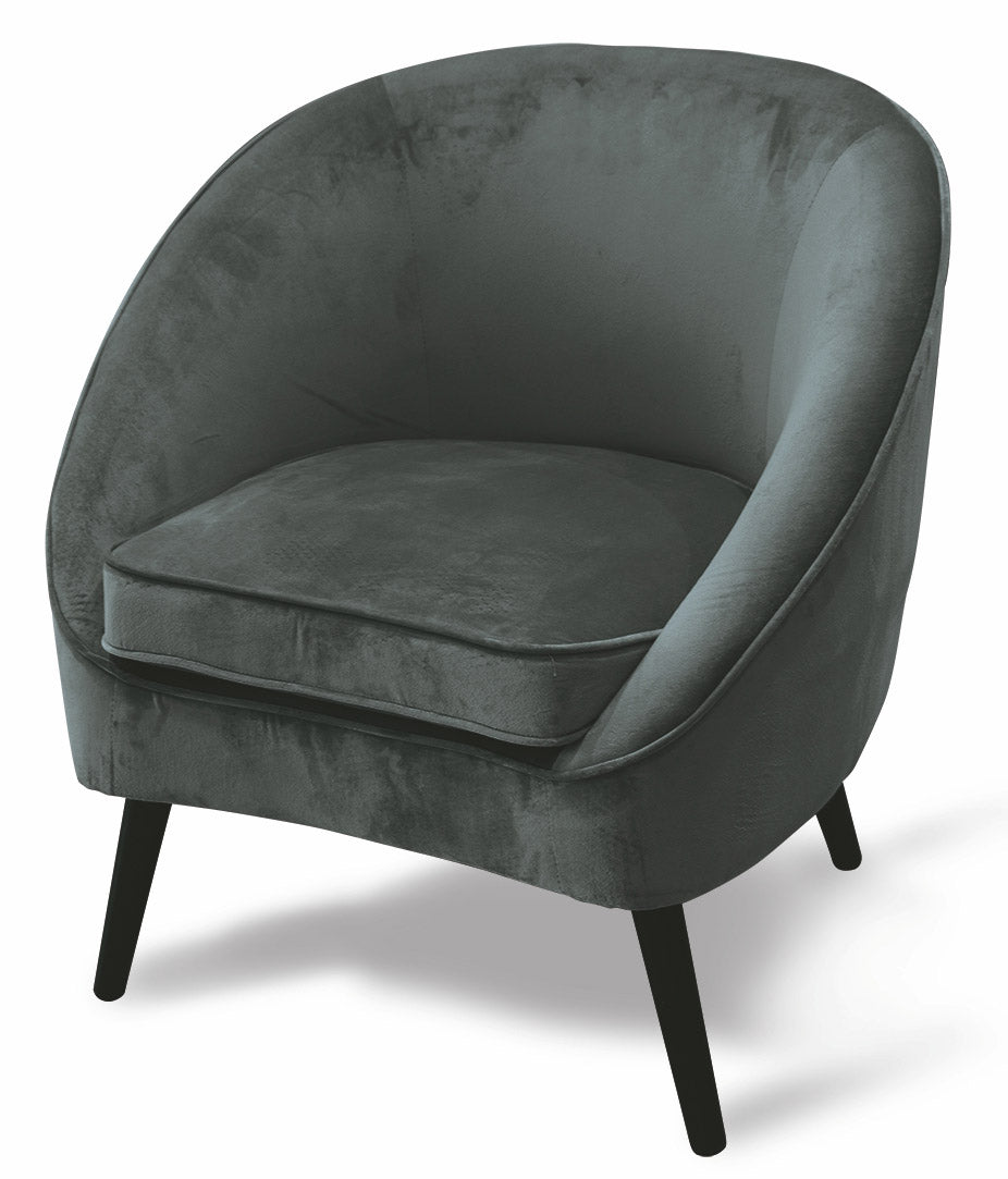 Gepolsterter Samtsessel mit dunkelgrauen Soriani-Holzbeinen