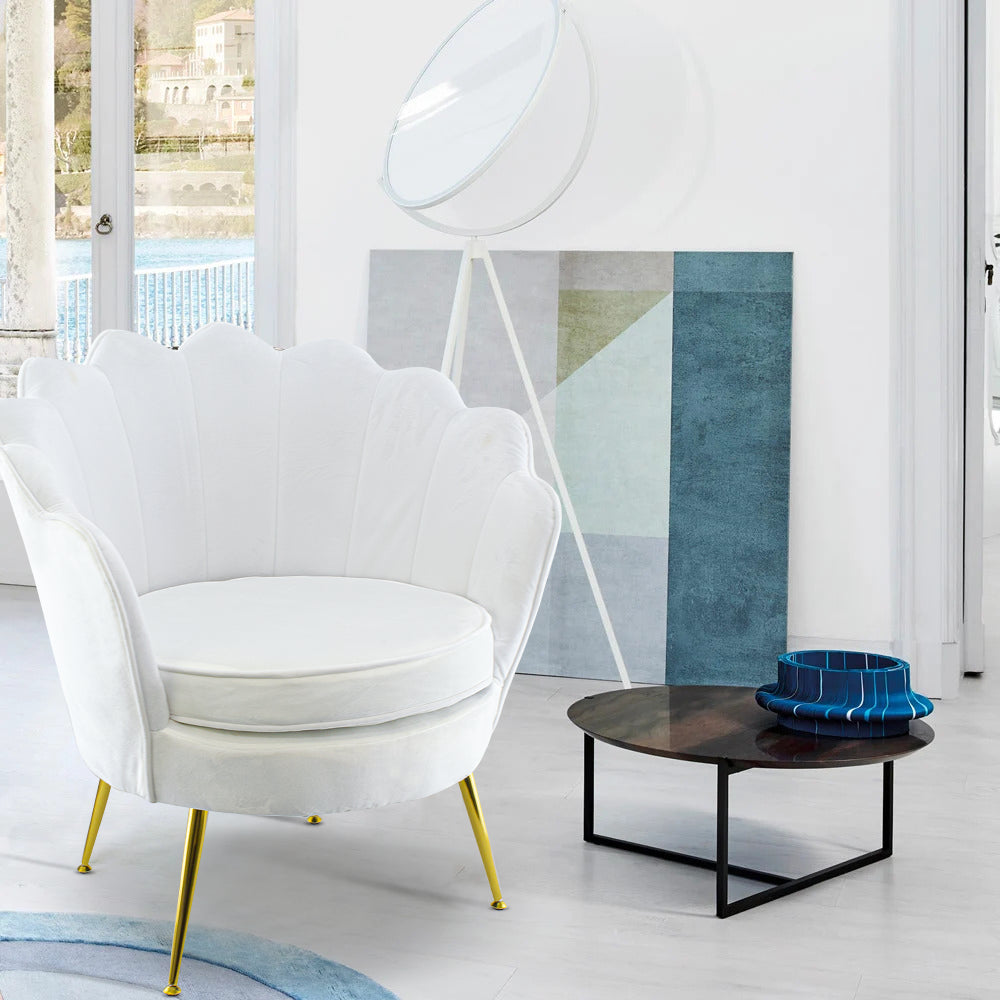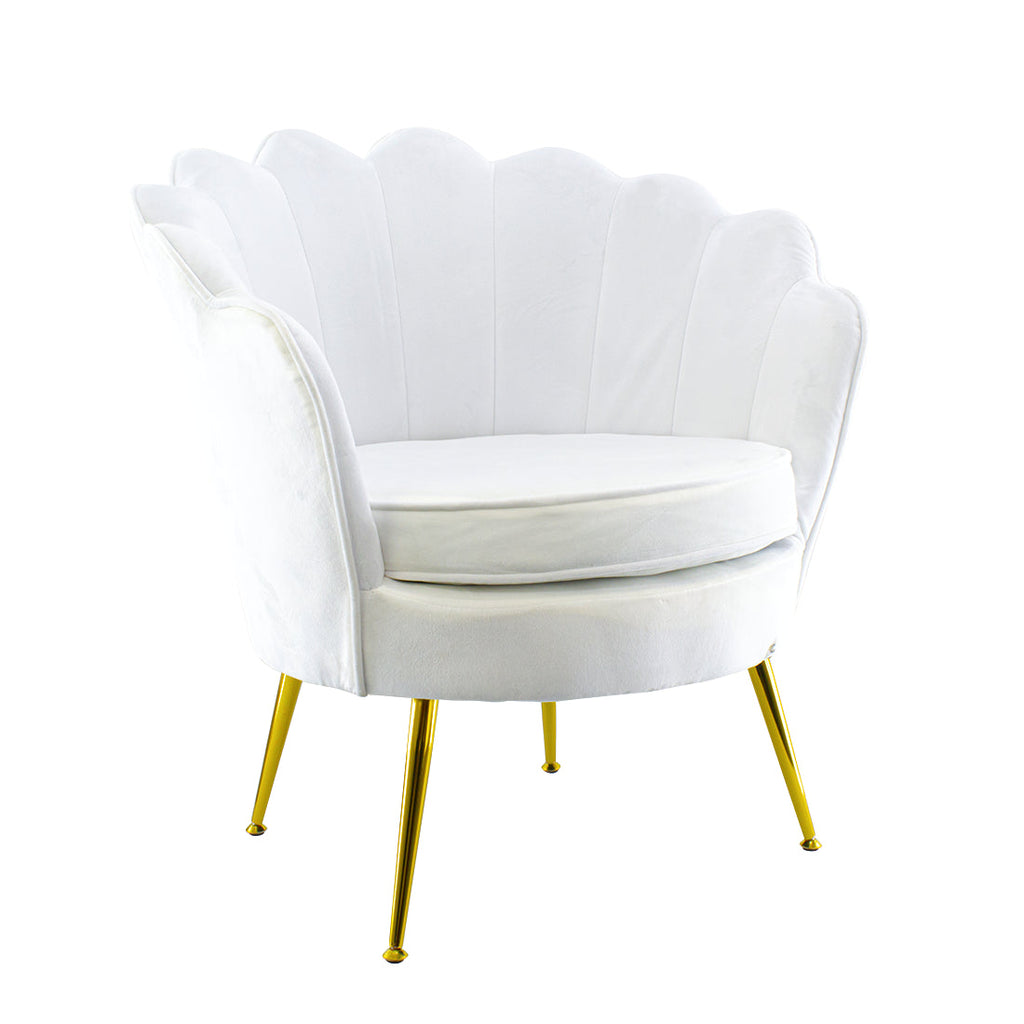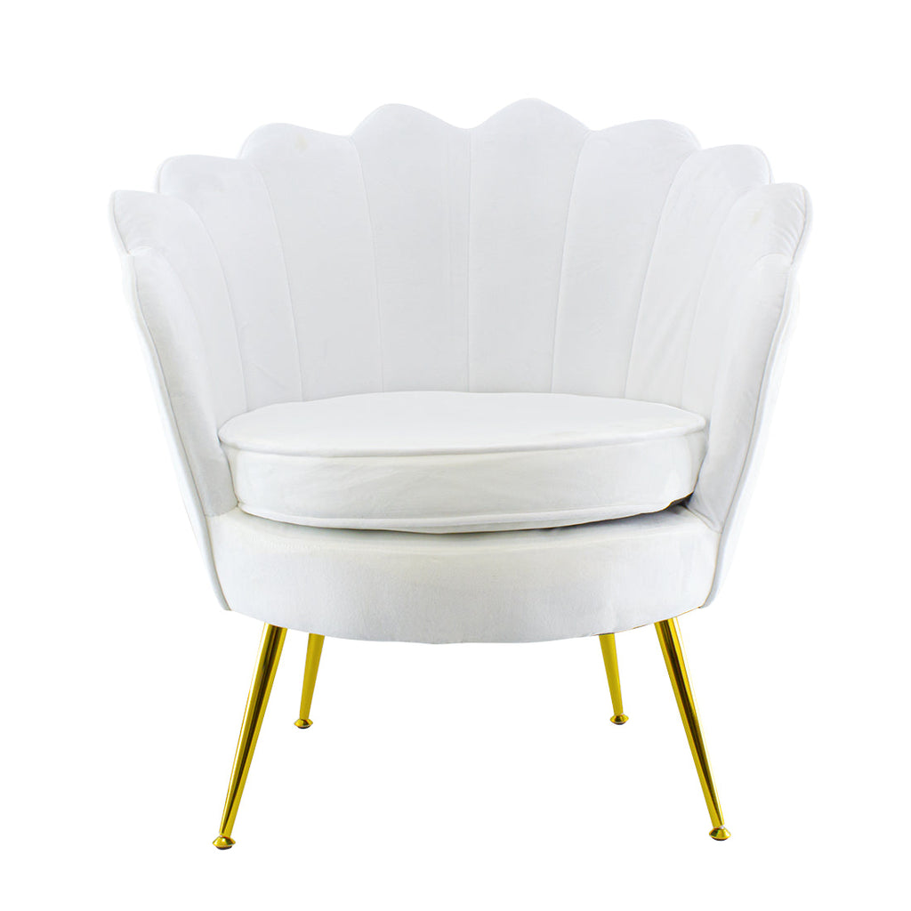 Gepolsterter Sessel mit Schalenrücken in Samt und Weißgoldfüßen