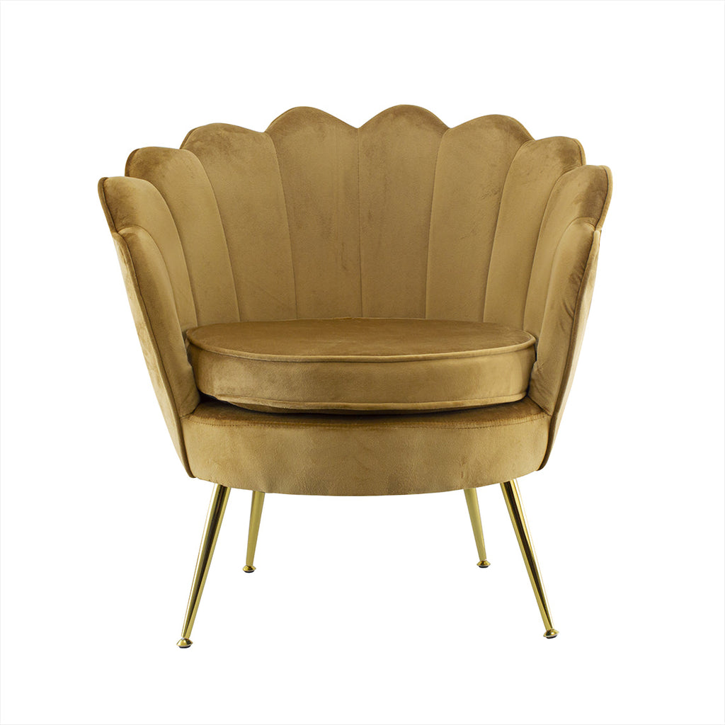 Gepolsterter Sessel mit Schalenrücken in samtbraunen Goldfüßen