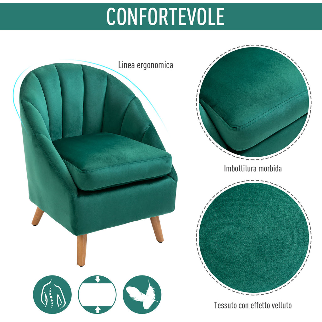 Dieser Sessel ist perfekt, um Ihrem Wohnzimmer einen Hauch von Raffinesse zu verleihen! Dank des eleganten Samtstoffs und des zeitlosen Stils des Holzes passt es sich jeder Art von Möbeln an.