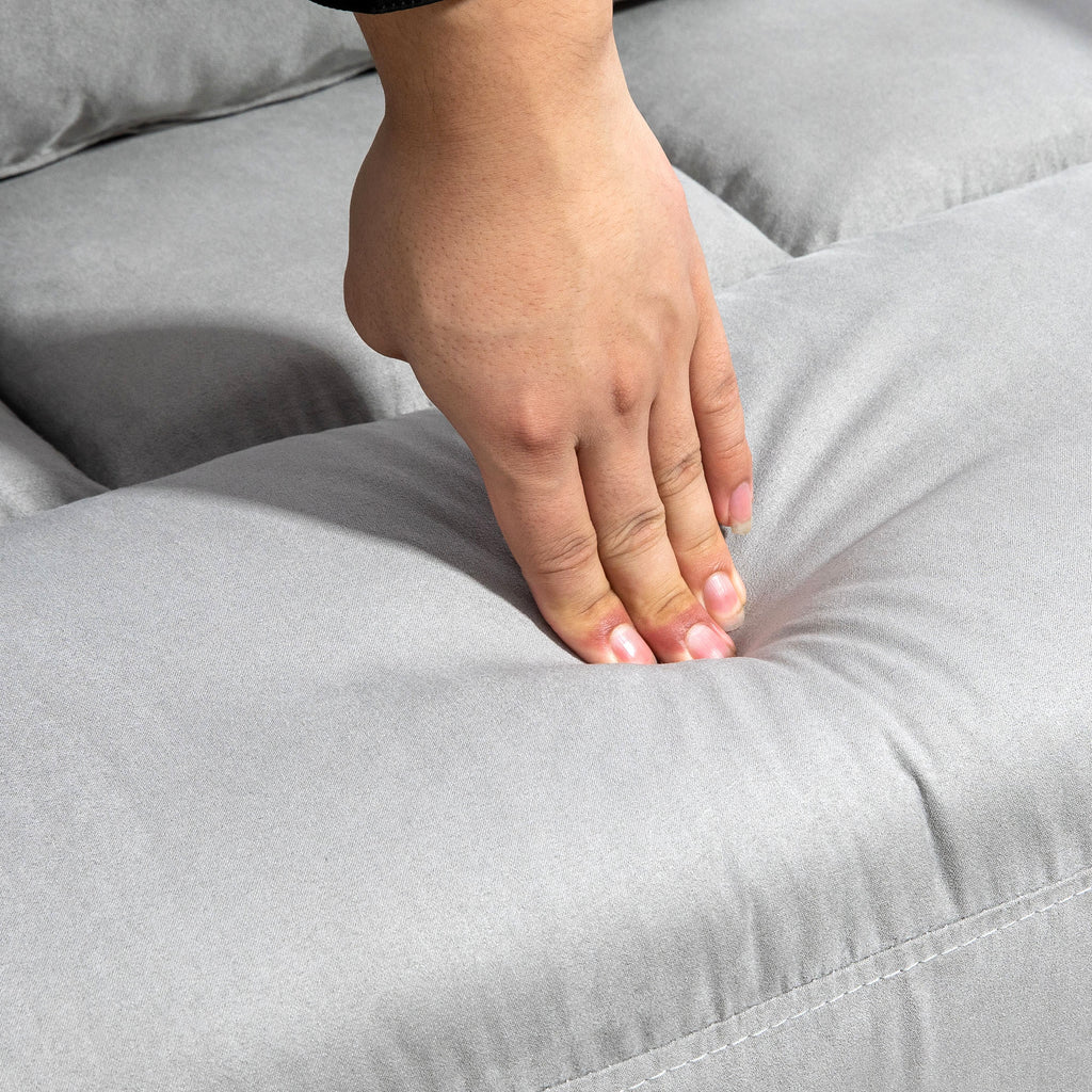 Poltrona Letto 3 in 1 Schienale Reclinabile in Finta Pelle Scamosciata Grigio Chiaro