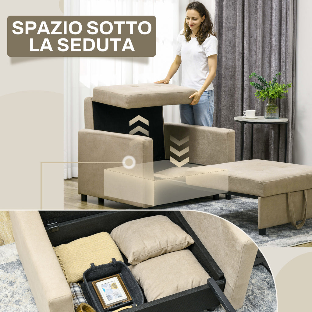 Poltrona Letto Singolo 100x98x88 cm 2 Cuscini e Vano Contenitore in Velluto Marrone Chiaro