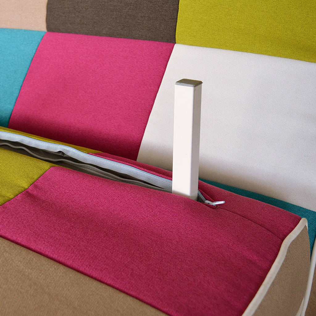 - Die Polsterung ist aus mehrfarbigem Stoff