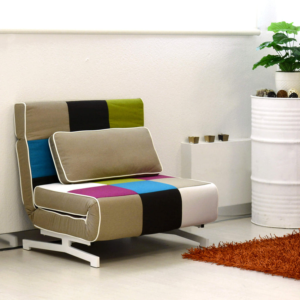 Einzelsesselbett 90 x 76 x 89 cm aus Metall und kariertem Stoff in Super Multicolor