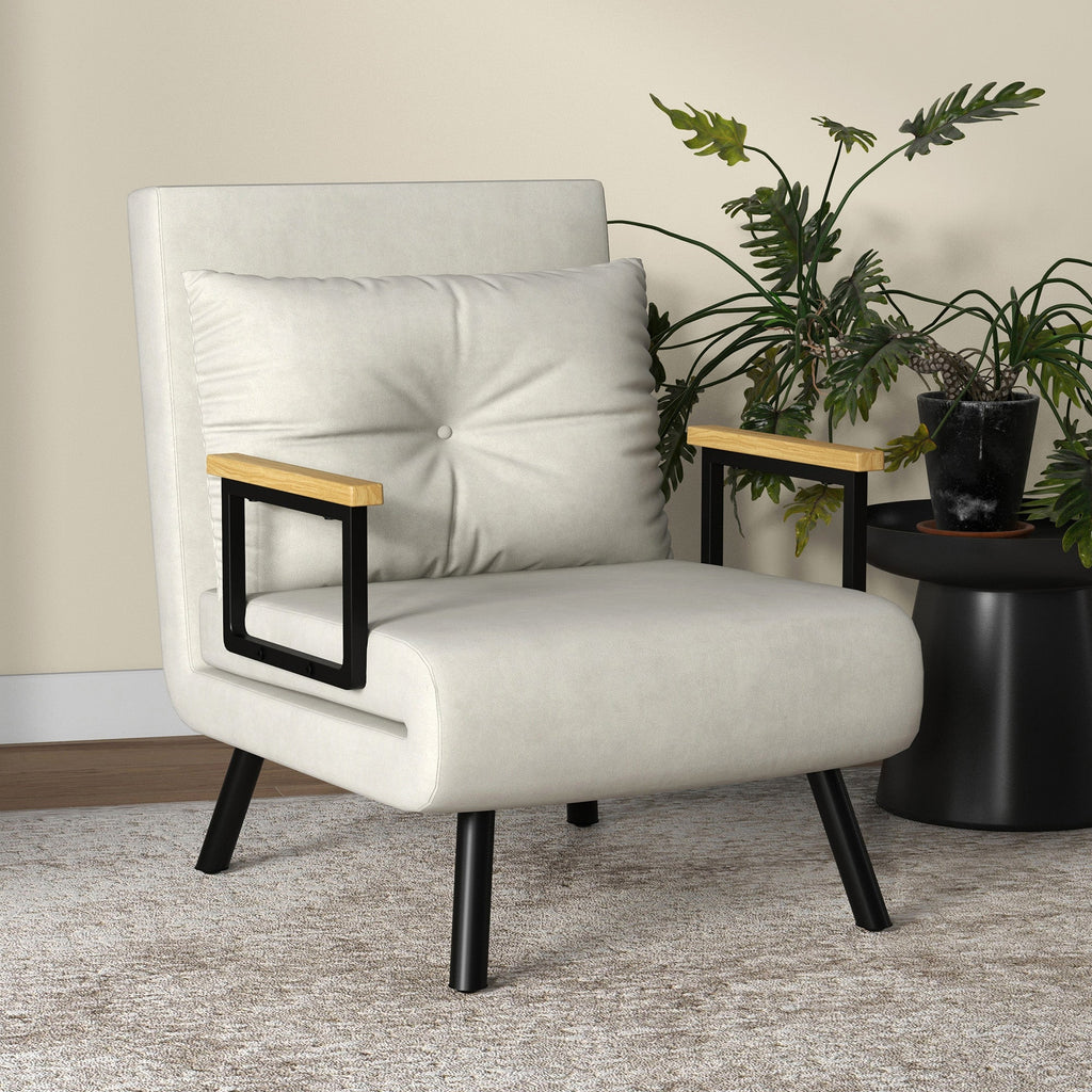 Poltrona Letto Singolo Reclinabile con Cuscino Sfoderabile in Tessuto Effetto Lino Crema