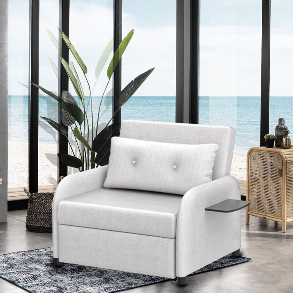 Poltrona Letto Singolo Trasformabile 105x94x86 cm in Tessuto Lino Sfoderabile Grigio Chiaro