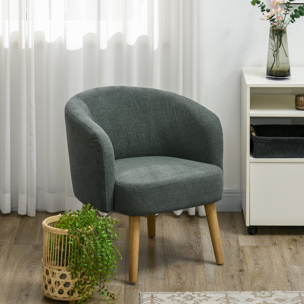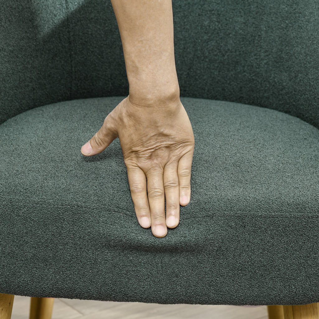 Poltrona Moderna a Botte Gambe in Legno in Tessuto Imbottito Verde Scuro