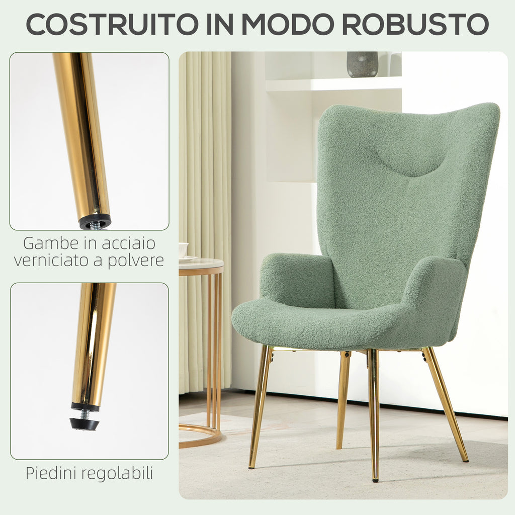 Poltrona Moderna con Schienale Alto 73x68x111 cm in Tessuto Effetto Sherpa Verde e Oro