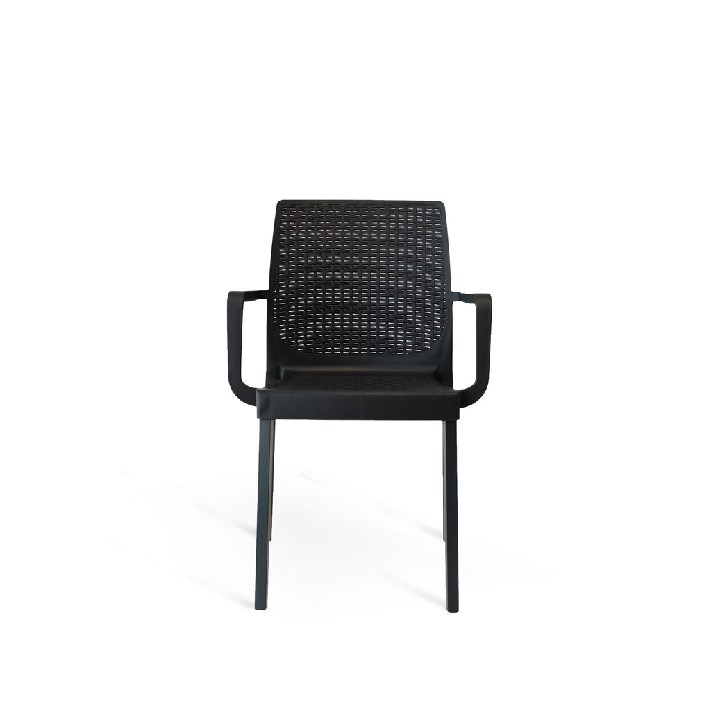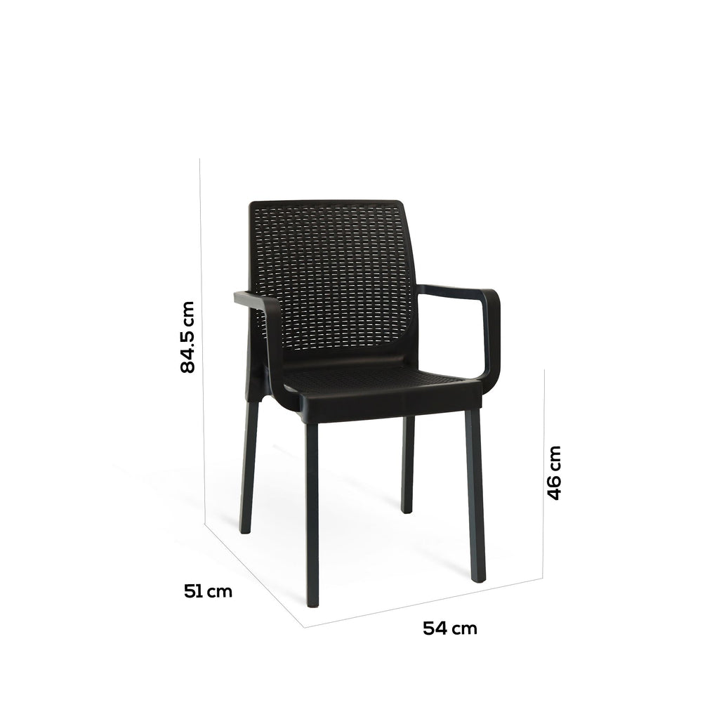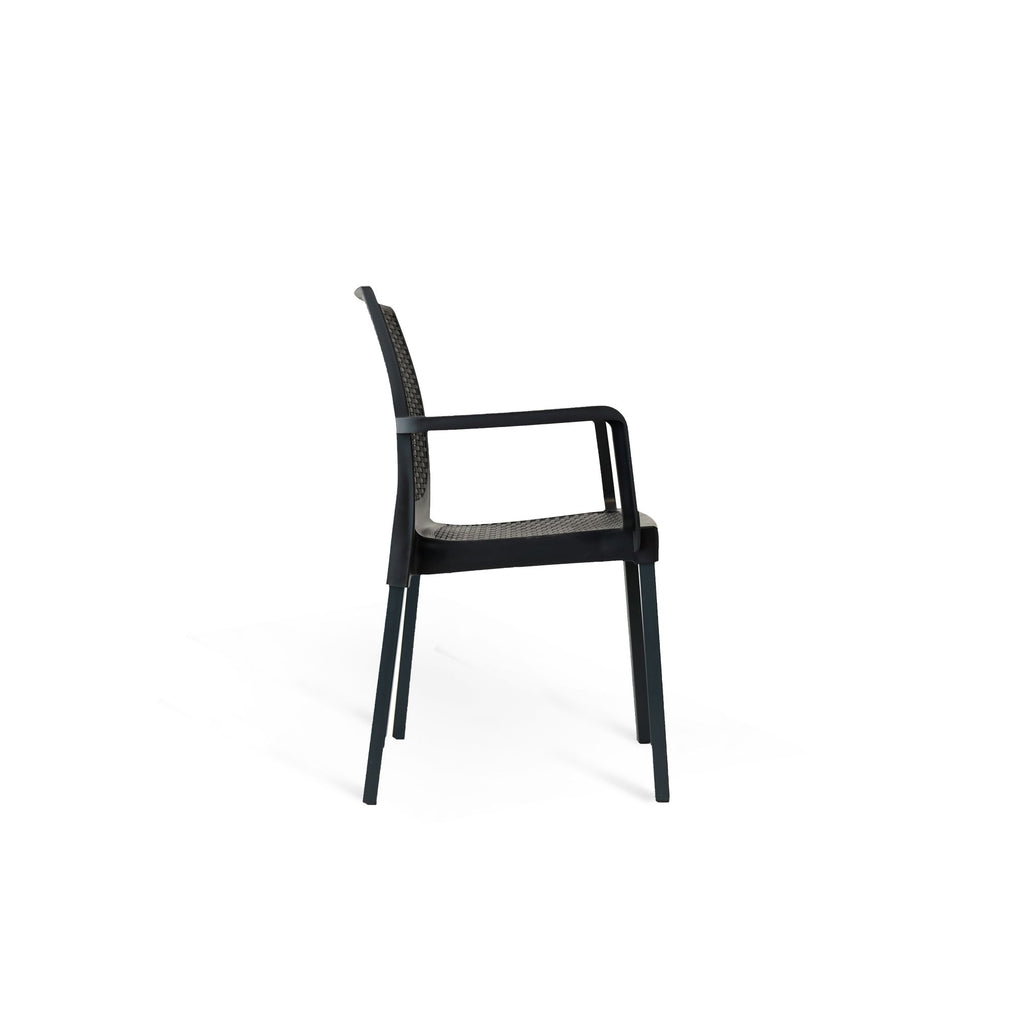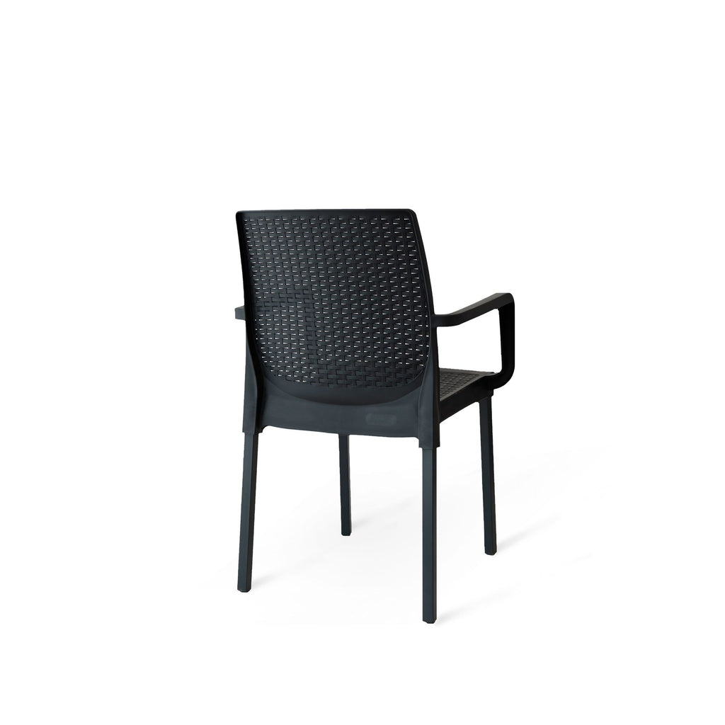 Tutta la praticità di una poltrona in polipropilene, con la stabilità e la robustezza della struttura in metallo. Myra è la polttrona perfetta per arredare con gusto patio, terrazza o il dehor della tua attività. Il confort e l’eleganza di questa poltrona ti permette di posizionarla anche all’interno di casa per soggiorni o cucina dallo stile moderno.