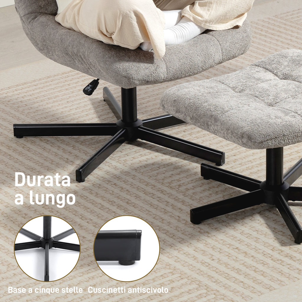 - ROTATIONE SENZA SFORZO: Questa poltrona d'arredo assicura una rotazione scorrevole di 360°, facilitando la possibilità di girarsi per leggere, conversare o prendere il caffè senza necessità di alzarsi