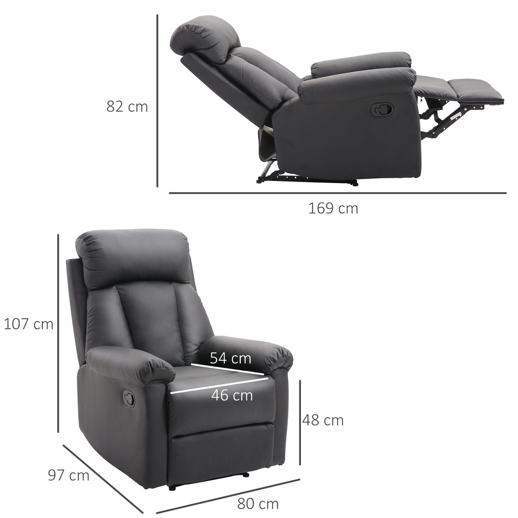 Klassischer Relaxsessel aus schwarzem Kunstleder mit verstellbarer Rückenlehne und Fußstütze