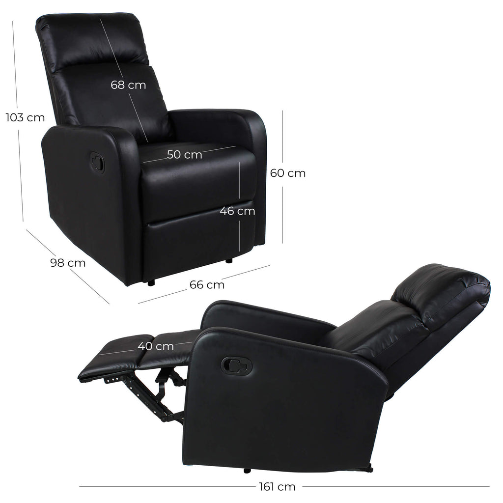 Vandi Saoma Schwarz Kunstleder Manueller Relaxsessel 66x103x98 cm