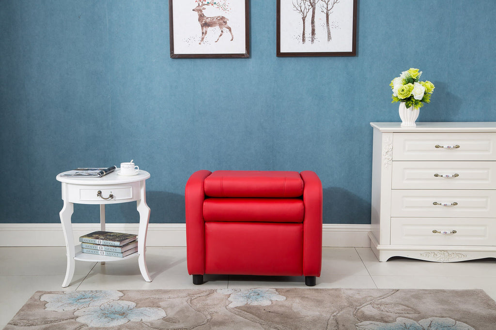 Durch die bequemen Armlehnen, die gepolsterte Rückenlehne und die Möglichkeit, die Beine auszustrecken, ist er in jeder Hinsicht ein Fernsehsessel . Mit leichtem Druck auf die Armlehnen genießen Sie dank der erhöhten Fußstütze die beste Position. Bei Bedarf kann der Sessel zu einem schönen Pouf geschlossen werden.