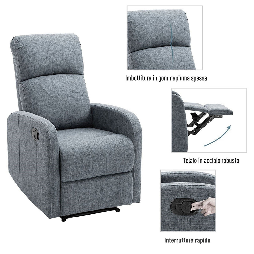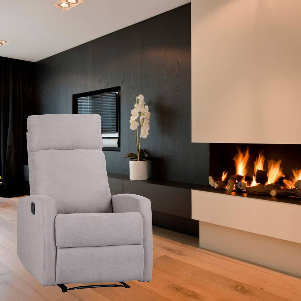 Moderner und eleganter manueller Entspannungssessel aus Stoff, ein einzigartiges und unwiederholbares Produkt mit einer umhüllenden Rückenlehne für einen gelassenen, bequemen und entspannten Sitz.