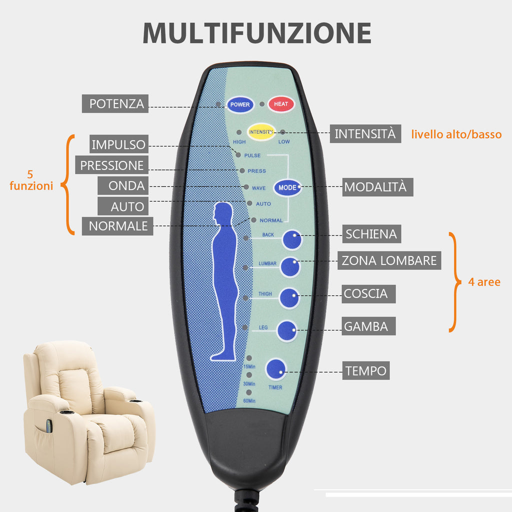 Beigefarbener Kunstleder-Massage-Relax-Sessel