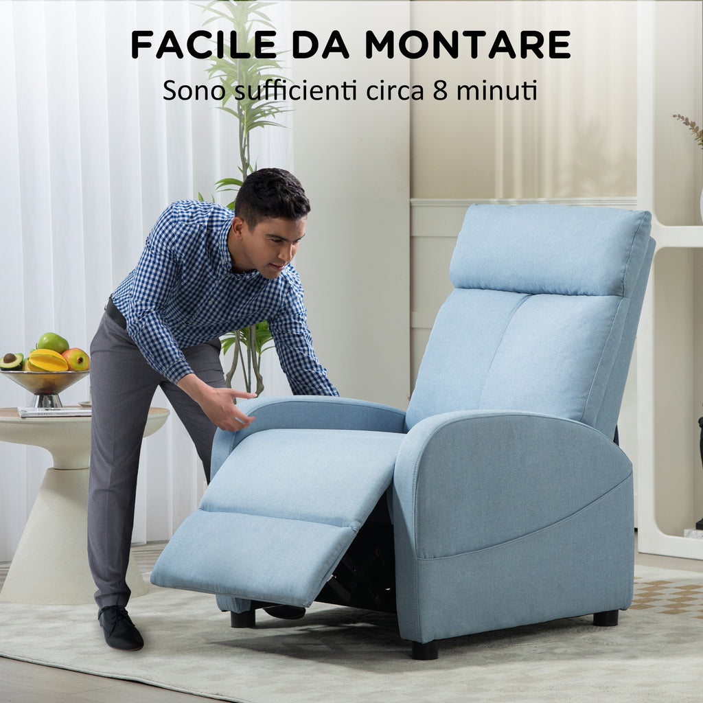 Poltrona Relax Reclinabile 165° 69x85x100 cm in Tessuto Effetto Lino Azzurro