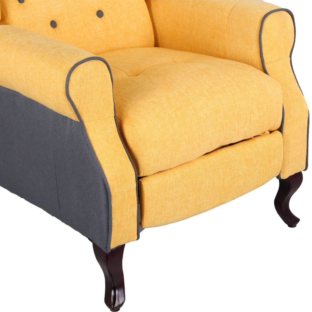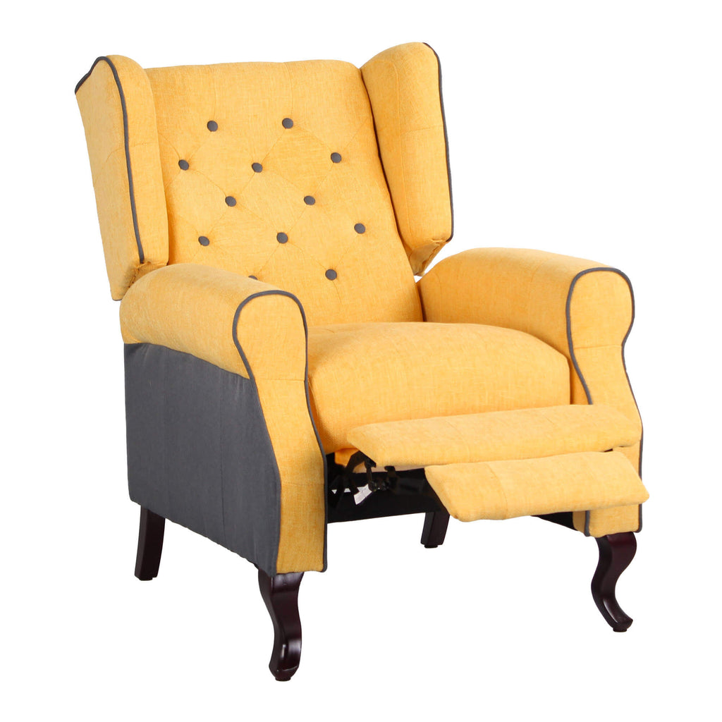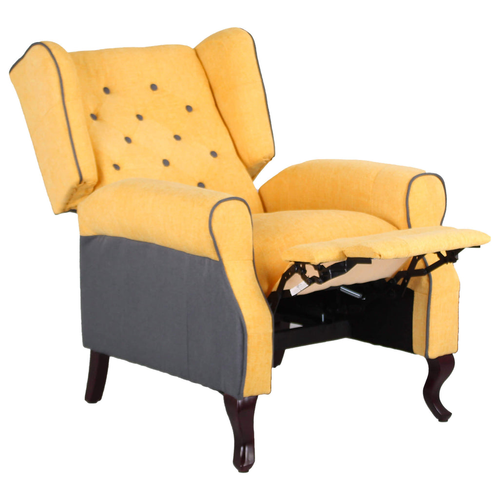 Es ist ein einzigartiges und unwiederholbares Produkt mit einer umhüllenden Rückenlehne und einem komponierten, bequemen und entspannten Sitz, mit einem leichten Druck auf die Armlehnen senkt sich die Rückenlehne sanft synchron mit der Fußstütze. Polsterung aus leicht waschbarem Qualitätsstoff, solide innere Holzstruktur, die den Sessel robust und widerstandsfähig gegen jedes Gewicht macht. Füße in Buche.