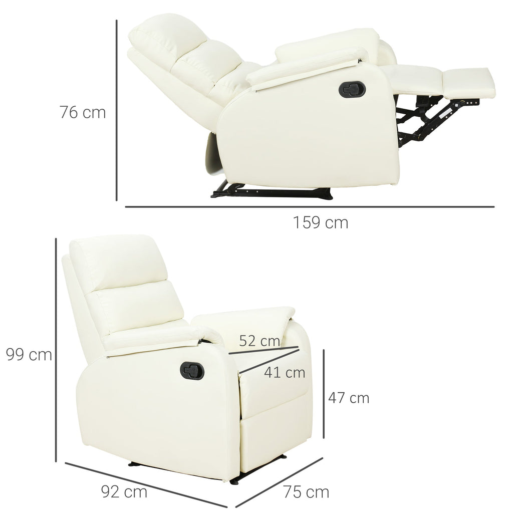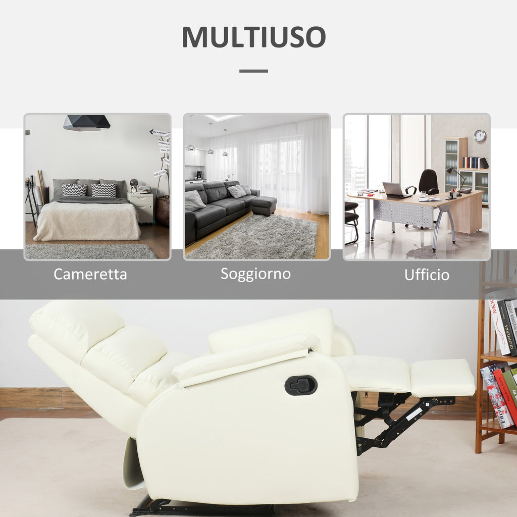 Manuell verstellbarer Relaxsessel aus cremefarbenem Kunstleder