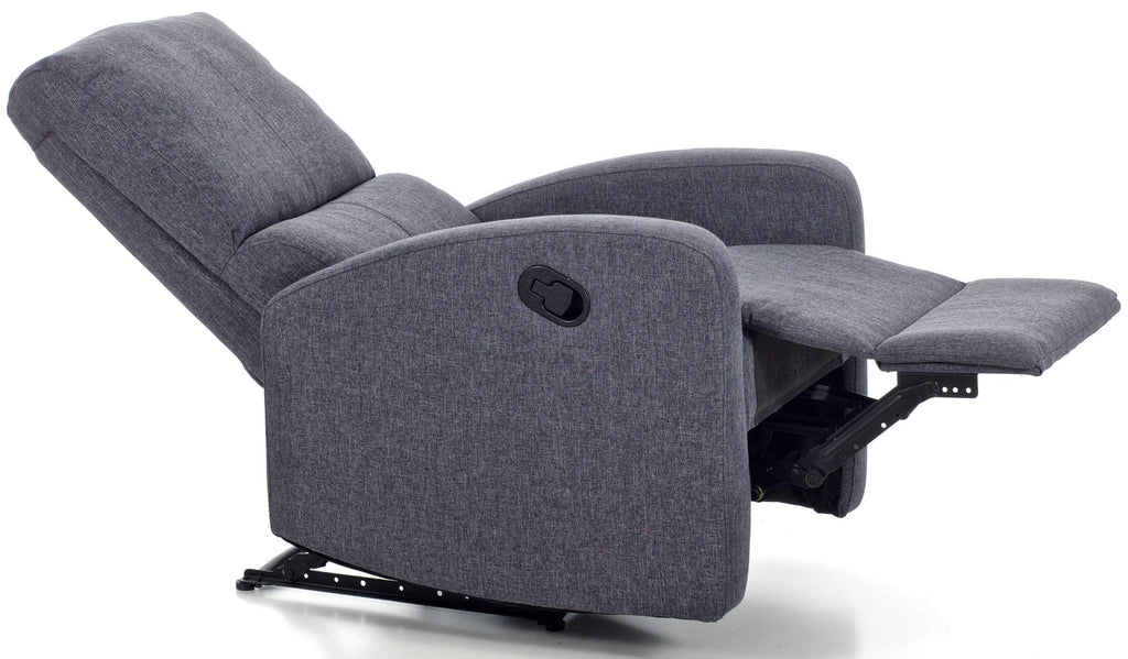 Die Fußstütze wird über den seitlichen mechanischen Hebel verstellt, während das manuelle Liegesystem durch leichten Körperdruck auf Rückenlehne und Armlehnen aktiviert wird.