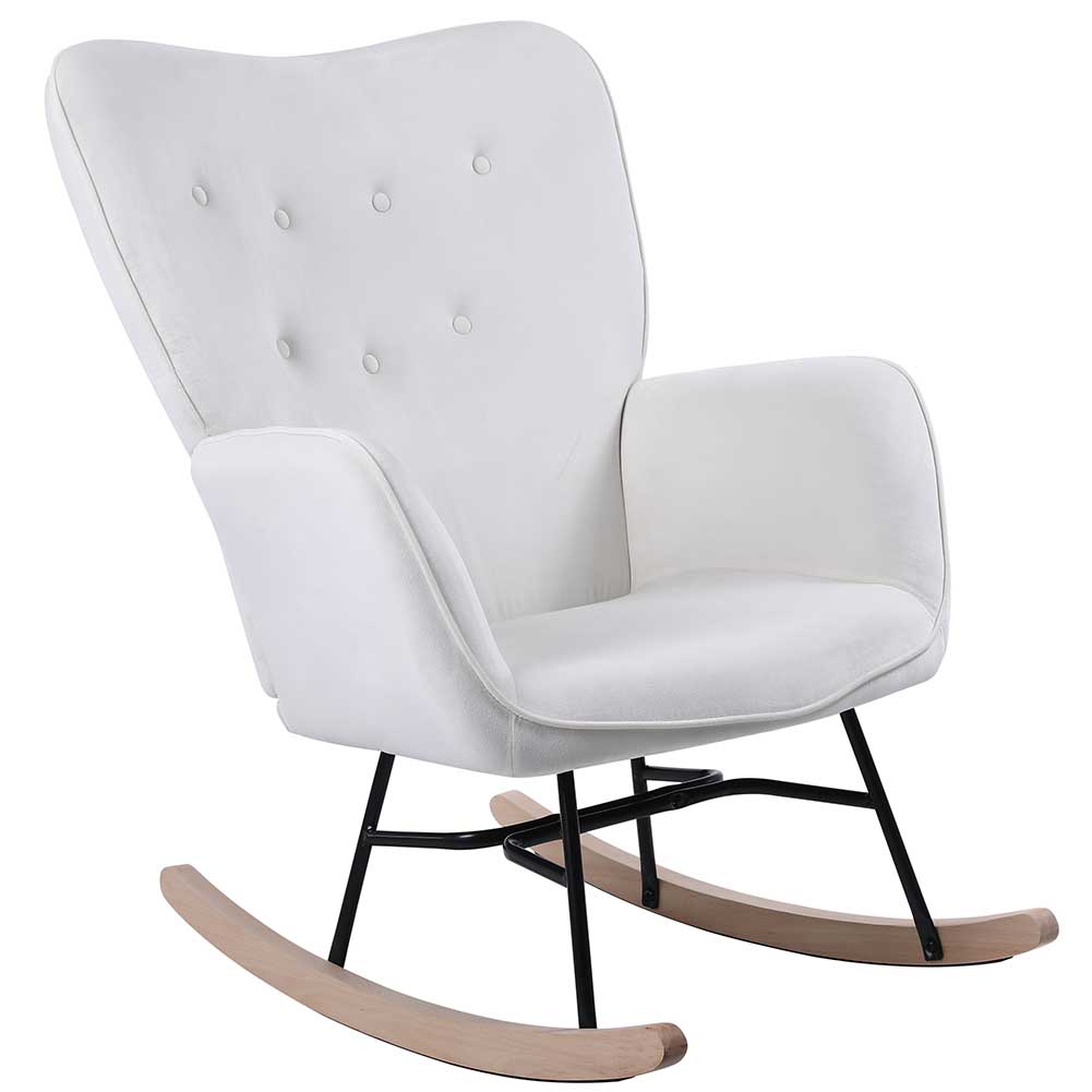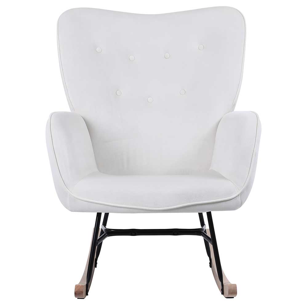 Poltrona Sedia Dondolo Relax Tessuto e Metallo Imbottita Design Moderno Crema