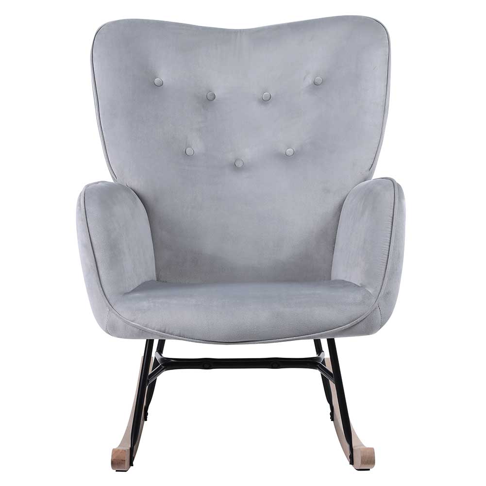 Poltrona Sedia Dondolo Relax Tessuto e Metallo Imbottita Design Moderno Grigio