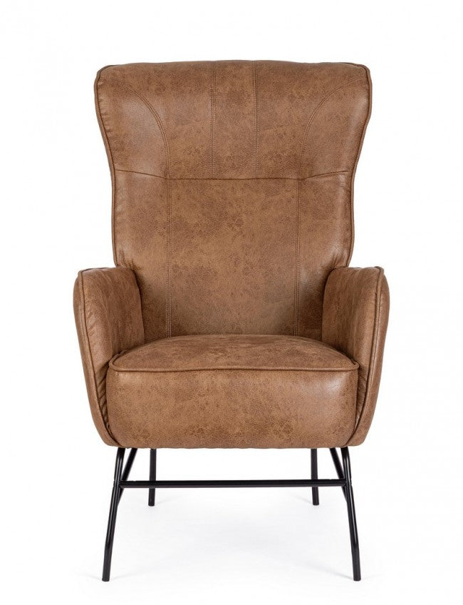 Struttura in acciaio e gambe verniciate a polvere.Rivestimento in similpelle con imbottitura in schiuma poliuretanica.Le gambe necessitano di essere assemblate.Realizzato con ecopelle, un materiale ecologico e resistente.Poltrona Soggiorno 70x84x109 cm Nasira in Ecopelle Marrone