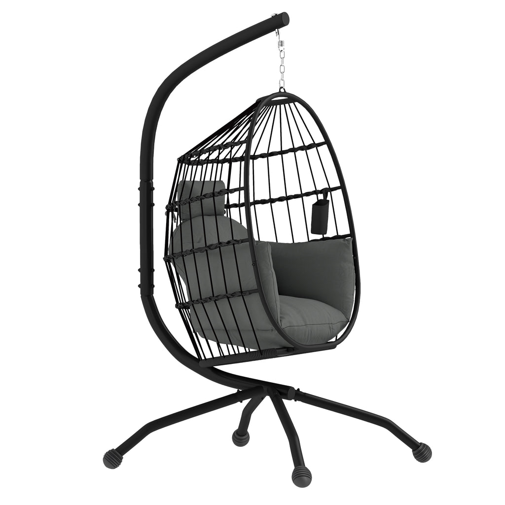 Poltrona Sospesa Amaca a Uovo 120x88x192 cm con Gancio Regolabile in Acciaio Nero e Grigio