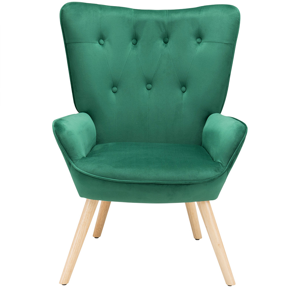 Poltrona Stile Scandinavo con Schienale Alto e Poggiapiedi In Velluto e Gambe in Legno Verde