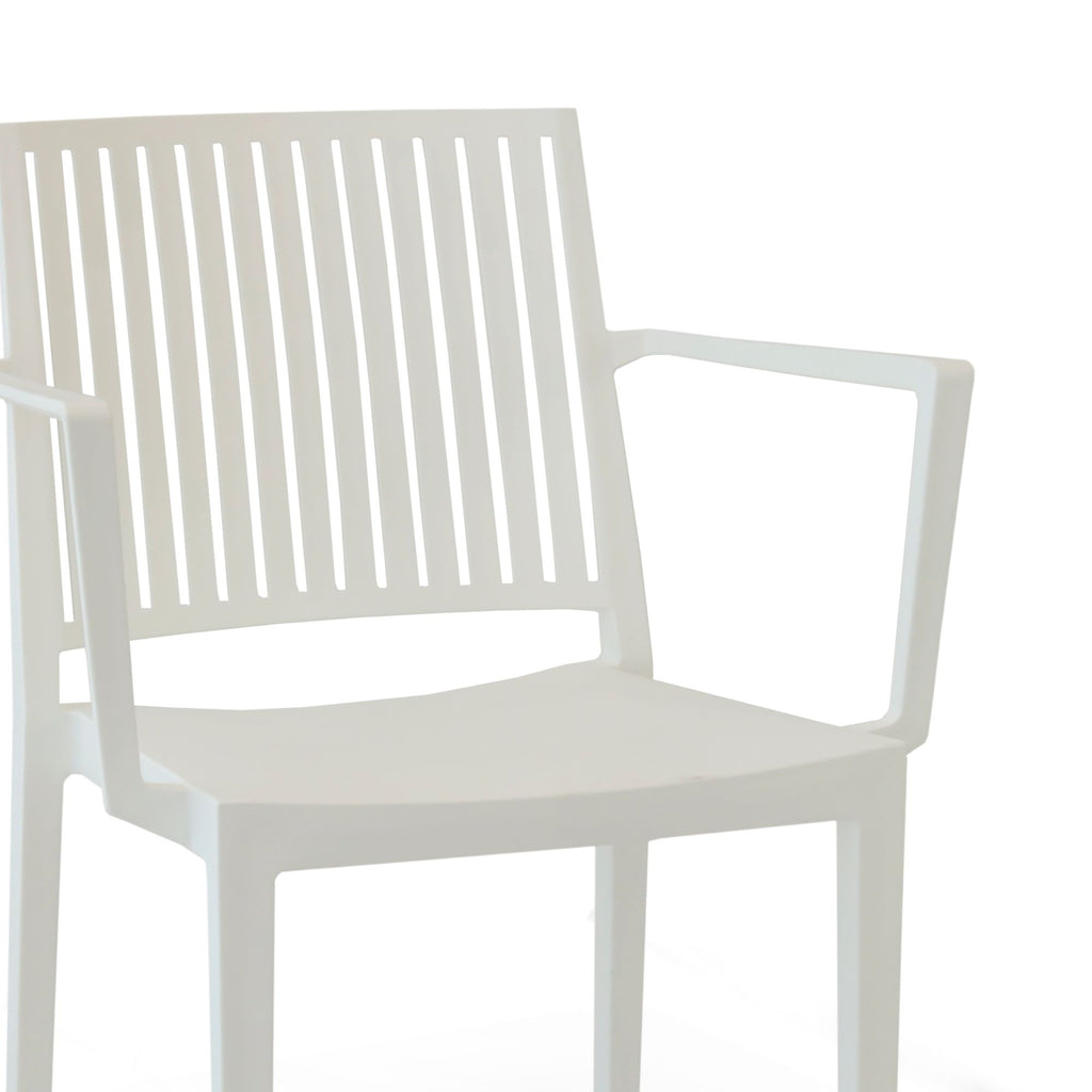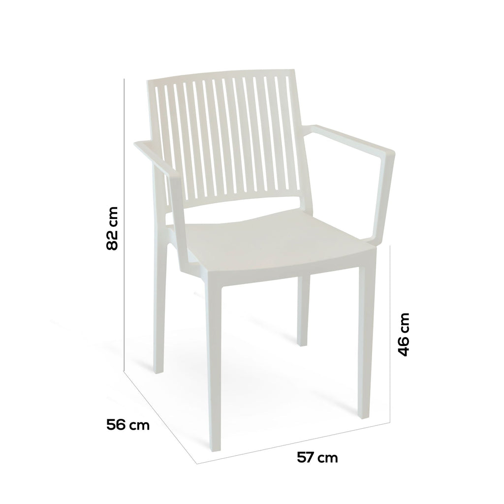 Poltrona con braccioli interamente realizzata in polipropilene bianca. Dimensione: 57*56*H82 cm Altezza seduta: 46 cm Colore: Nero Materiali: Polipropilene Cura del prodotto: Detergere con panno umido e acqua tiepida, smacchiare solo con prodotti specifici