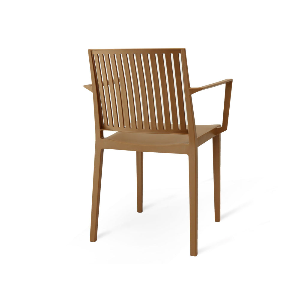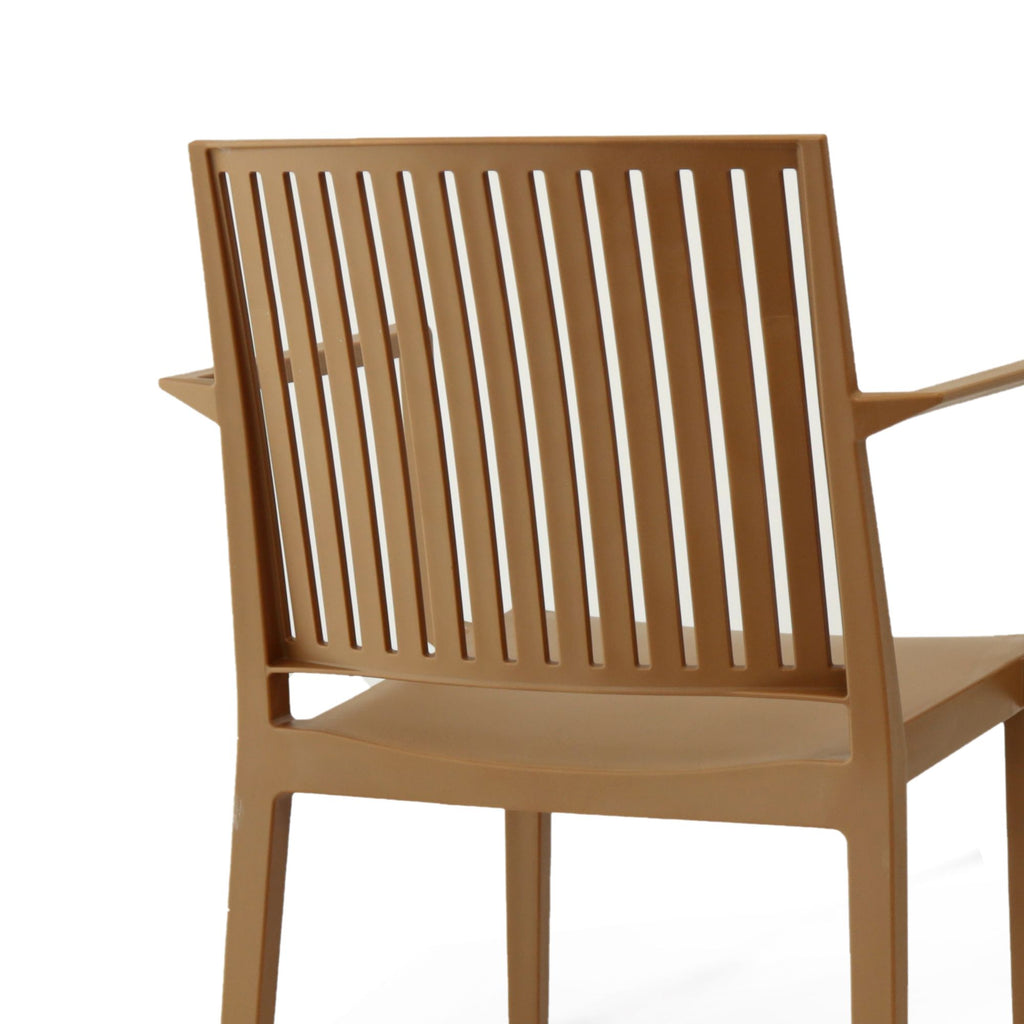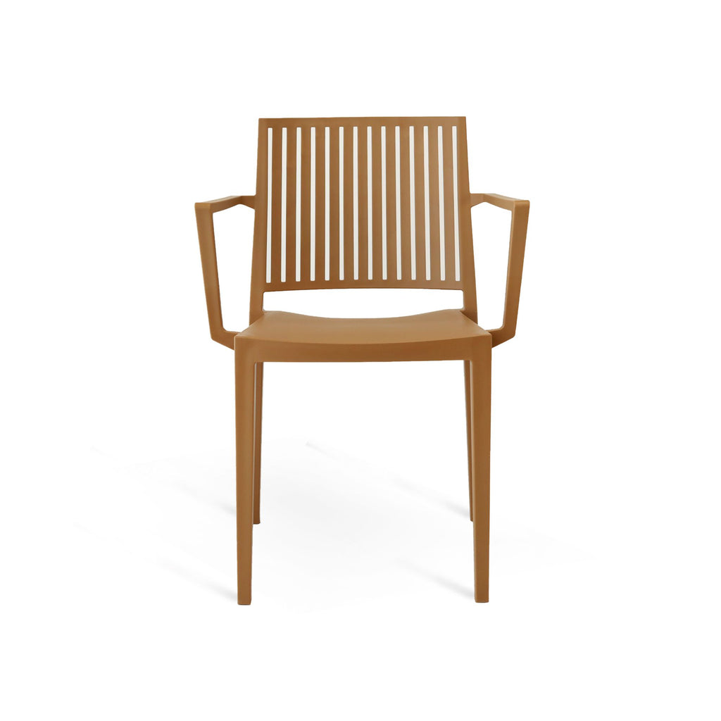 Poltrona con braccioli interamente realizzata in polipropilene camel. Dimensione: 57*56*H82 cm Altezza seduta: 46 cm Colore: Nero Materiali: Polipropilene Cura del prodotto: Detergere con panno umido e acqua tiepida, smacchiare solo con prodotti specifici