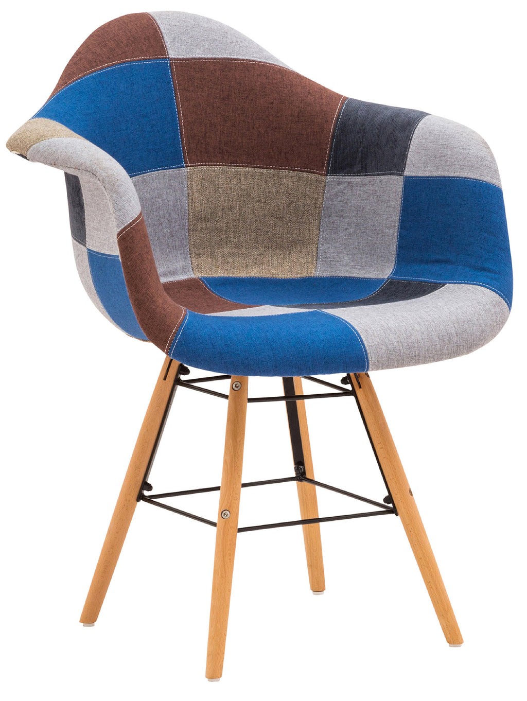 - Gepolsterter Stuhl/Sessel aus Patchwork-Stoff mit Beinen aus Buchenholz