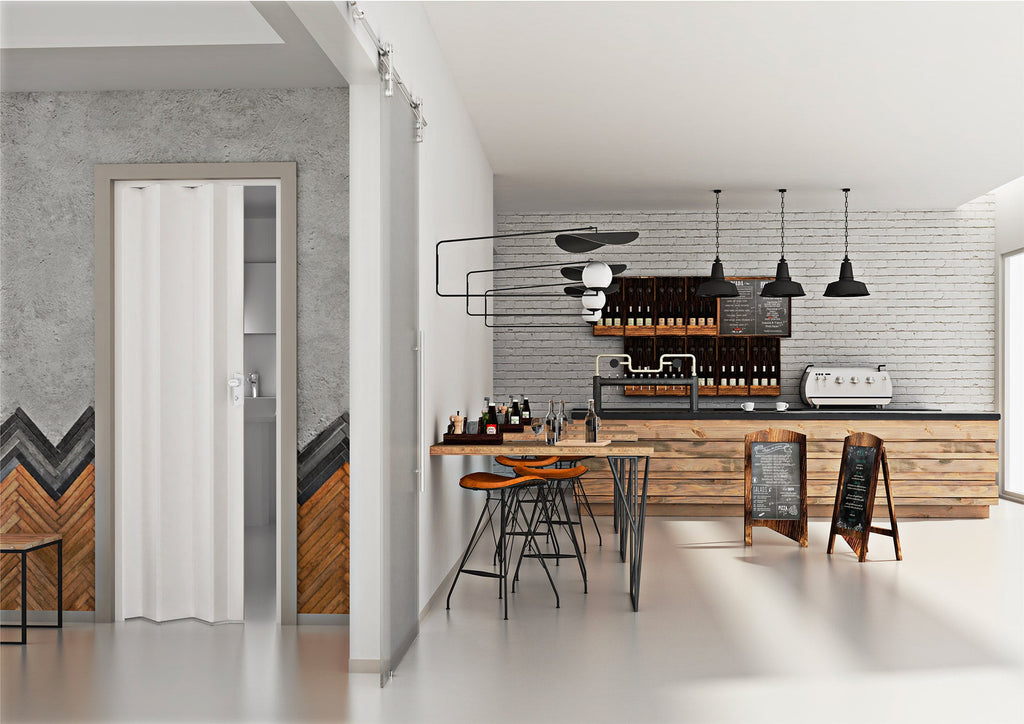 La Porta a Soffietto Caroline include lo speciale sistema di connessione tra i profili, grazie al quale si evidenzia la omogeneità del colore in tutte le posizioni chiusa o aperta, reversibile.