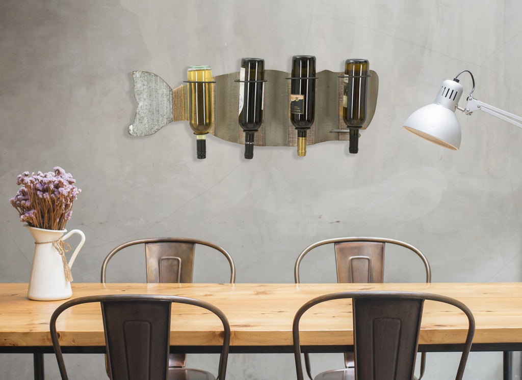 Wandflaschenhalter Whale 80x12,5x25 cm aus Eisen und MDF