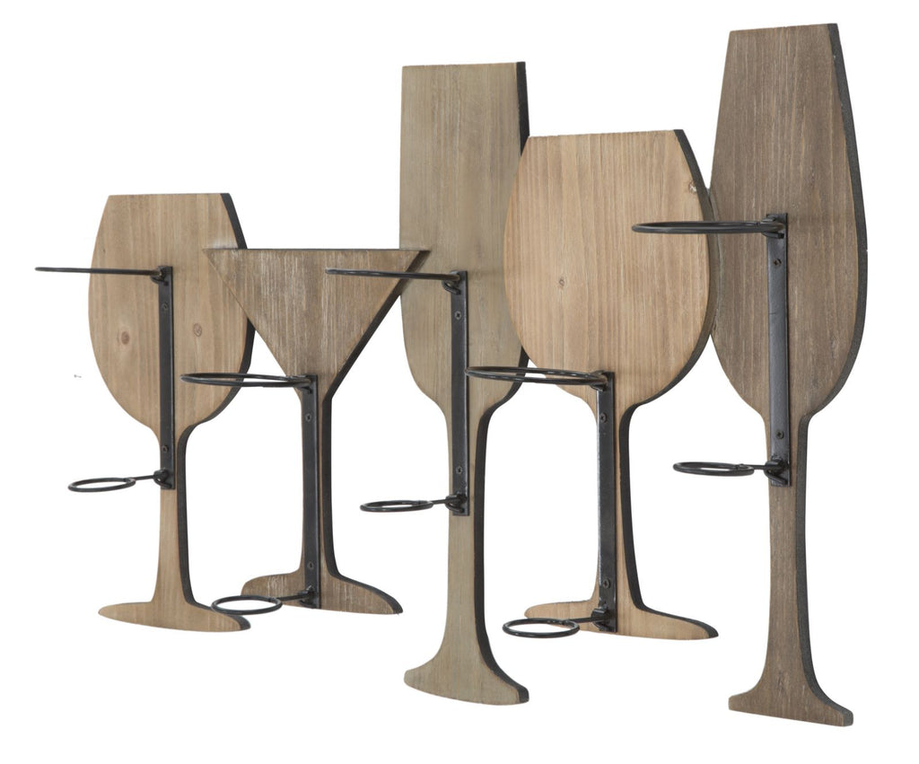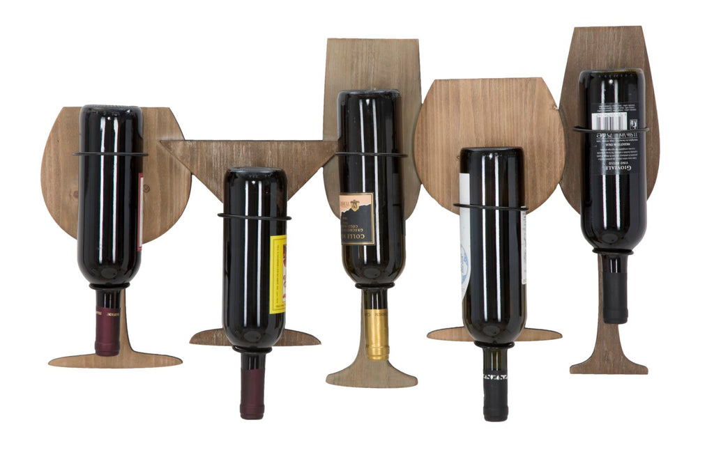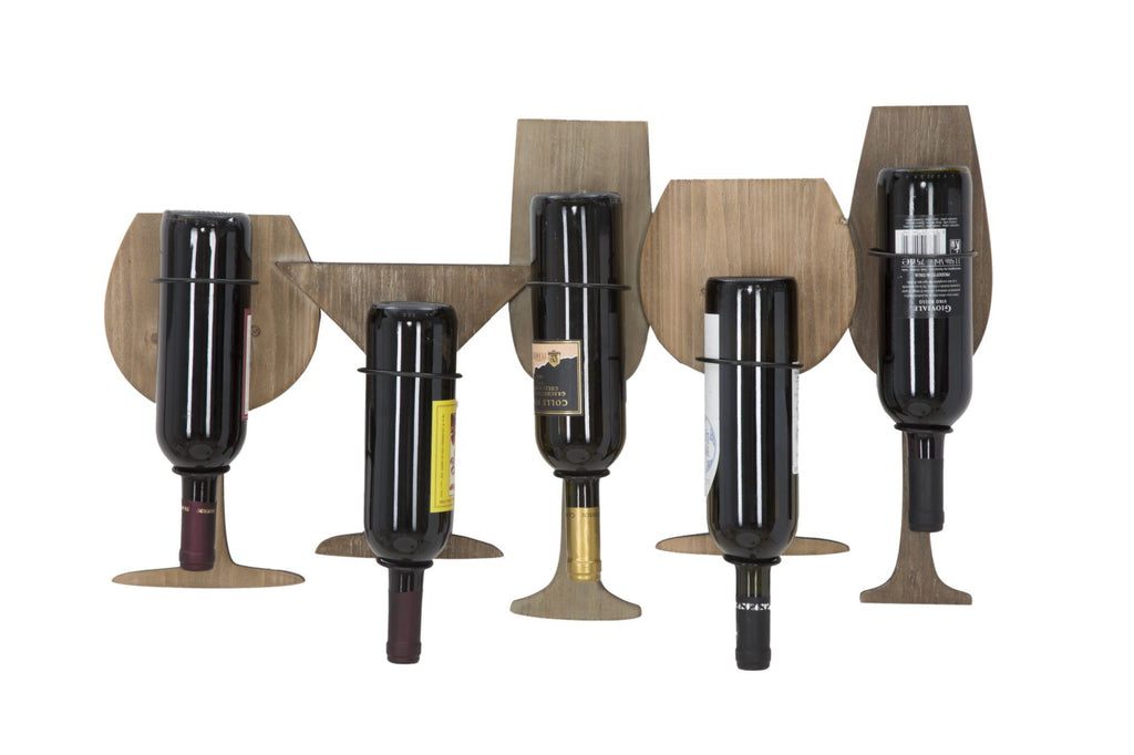 Praktischer Wandflaschenhalter aus MDF und Metall in Form von Gläsern. Apéro am Wochenende? Ja, aber mit Stil dank trendigen Flaschenhaltern.
