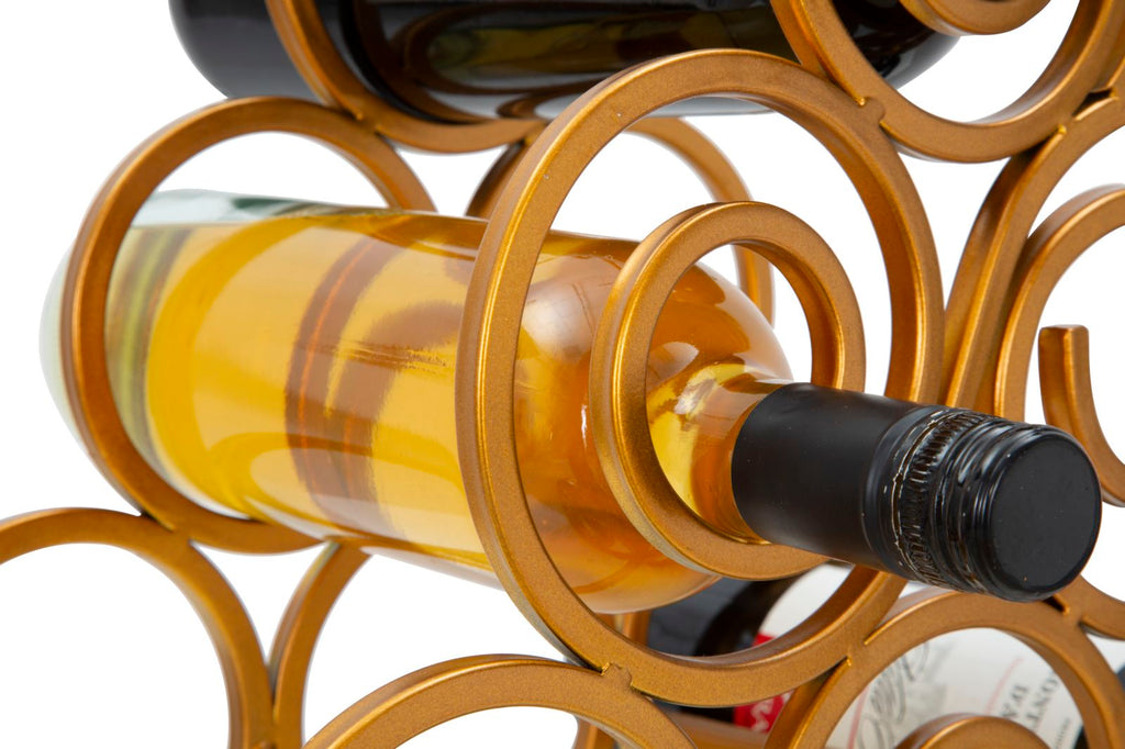 Glam Ring Flaschenhalter 6 Plätze 36x17,5x33,5 cm in Gold Iron