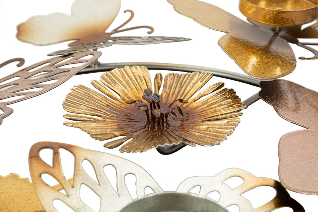 • Porta candela Shine: oggetto decorativo con fiori e farfalle multicolori, contenente fino a tre candele