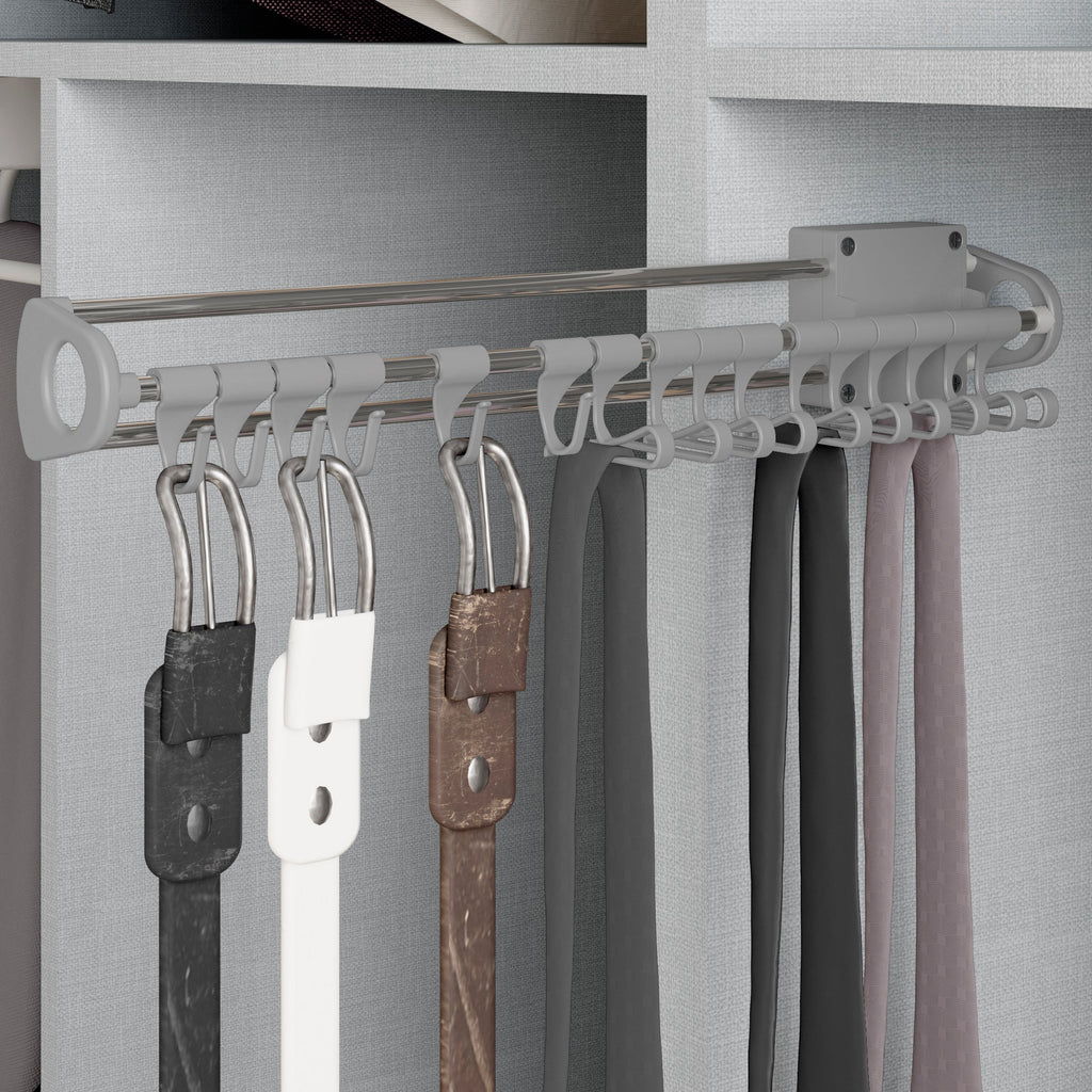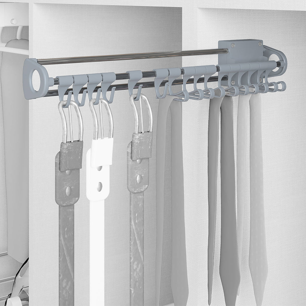 Der selbstausziehbare Krawattenhalter - Gürtelhalter an der Seite ist das ideale Accessoire, um Ordnung in Ihren Kleiderschrank zu bringen. Da es abnehmbar ist, können Sie Ihre Gürtel und Krawatten immer griffbereit haben.