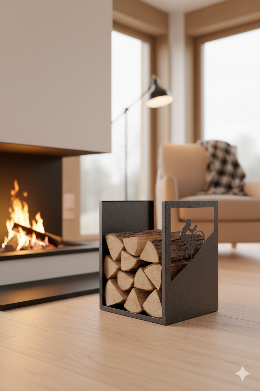 Porta Legna Sagomato Ciclista 40,5x35,5x50 cm in Ferro Verniciato Grigio Martellato - La Ferrotecnica