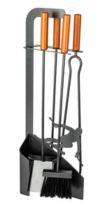 Trespolo per Attrezzi Camino Sagoma Sciatore con Paletta Scopino Attizzino e Pinza 15,6x23,5x65 cm in Ferro e Legno Grigio Martellato