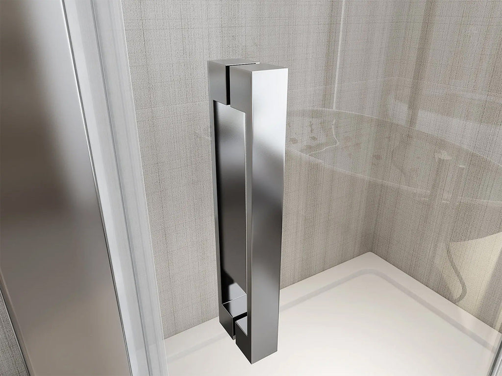 Duschkabinentür für Nischeneinbau mit nach innen gerichteter „Buch“-Öffnung. Die Tür lässt sich nach innen falten und garantiert einen maximalen nutzbaren Eingangsraum bei minimaler Belastung. Unsere Falttür besteht aus 6 mm starkem Anti-Kalk-Hartglas, der Rahmen ist verchromt und hat eine Höhe von 190 cm. Der Einbau bleibt reversibel, sodass der Kunde beim Einbau entscheidet, ob er mit Öffnung nach rechts oder nach links montiert werden soll. die Montagetoleranz wird durch die teleskopierbaren Wandprofile garantiert, die Montage ist sehr einfach, das System ist einfach und intuitiv und erfordert keine besonderen Fähigkeiten, die mit dem Produkt gelieferte Montageanleitung ist sehr nützlich. Das Öffnungs- und Schließsystem der Falttüren wird durch Scharniere aus verchromtem Messing gewährleistet, die lange halten und nicht durch Wasser beschädigt werden. Die vertikale Wasserdichtigkeit erfolgt durch die zwischen den Gläsern angebrachten Dichtungen, die das Eindringen von Wasser verhindern sollen. Im unteren Teil sorgt der untere Stab zusammen mit den Unterglasdichtungen dafür, dass kein Wasser austritt. Dieses Falttürmodell ist wie unser Salontürmodell, das Sie im Abschnitt BOX 6 MM finden, für diejenigen geeignet, die einen kleinen Eingang zur Dusche haben und eine vollständige Paketöffnung benötigen. Wie in unserem gesamten Sortiment haben wir die Ästhetik des Produkts bis ins kleinste Detail mit einem Griff, der auf den ersten Blick Stil und Schlichtheit vermittelt, nicht aufgegeben.