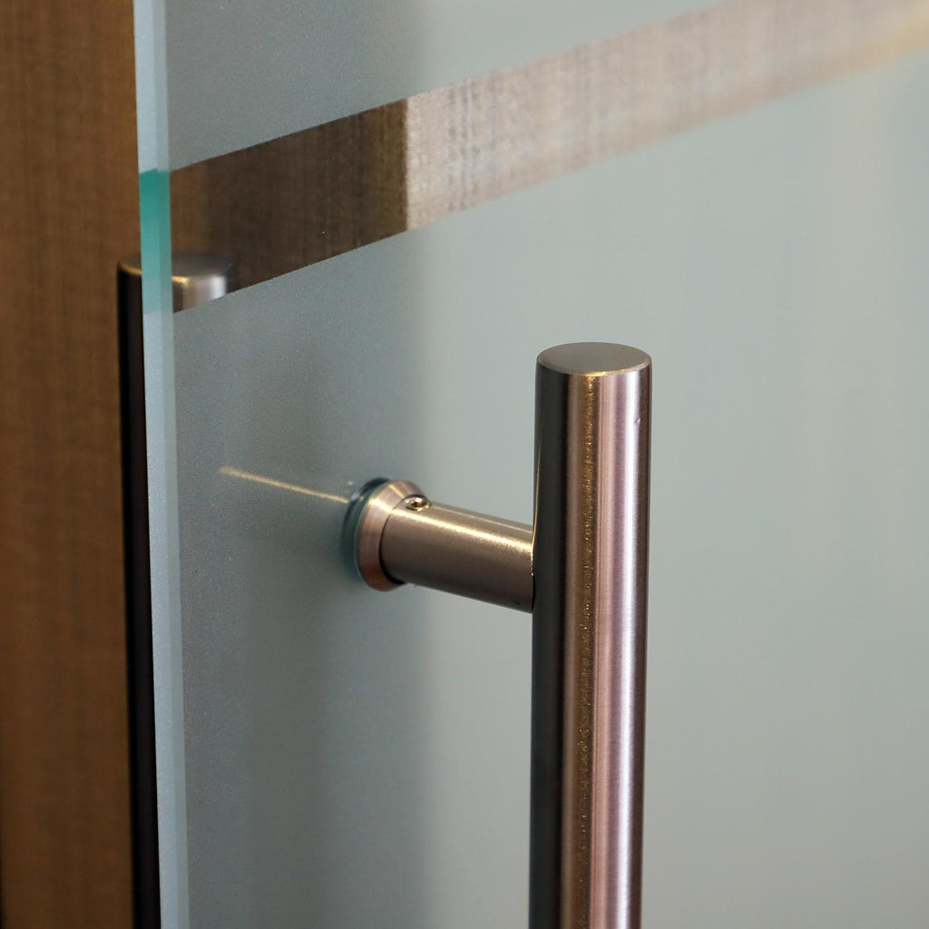 - Satinierte Oberfläche mit hoher Lichtdurchlässigkeit, matt. HINWEIS: Die Tür ist umkehrbar, aber die satinierte Oberfläche ist nur auf einer Seite des Glases vorhanden.