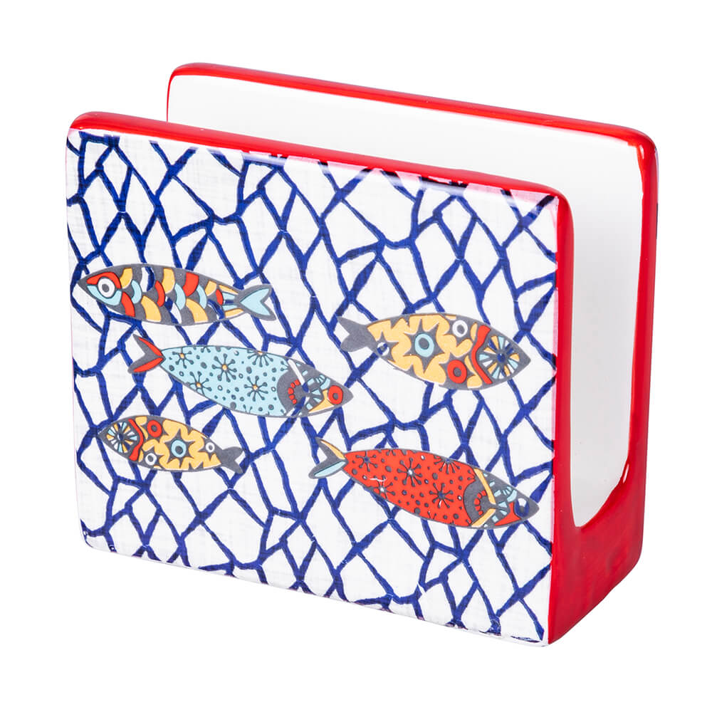 - Decoro con fondo bianco e blu e pesci colorati