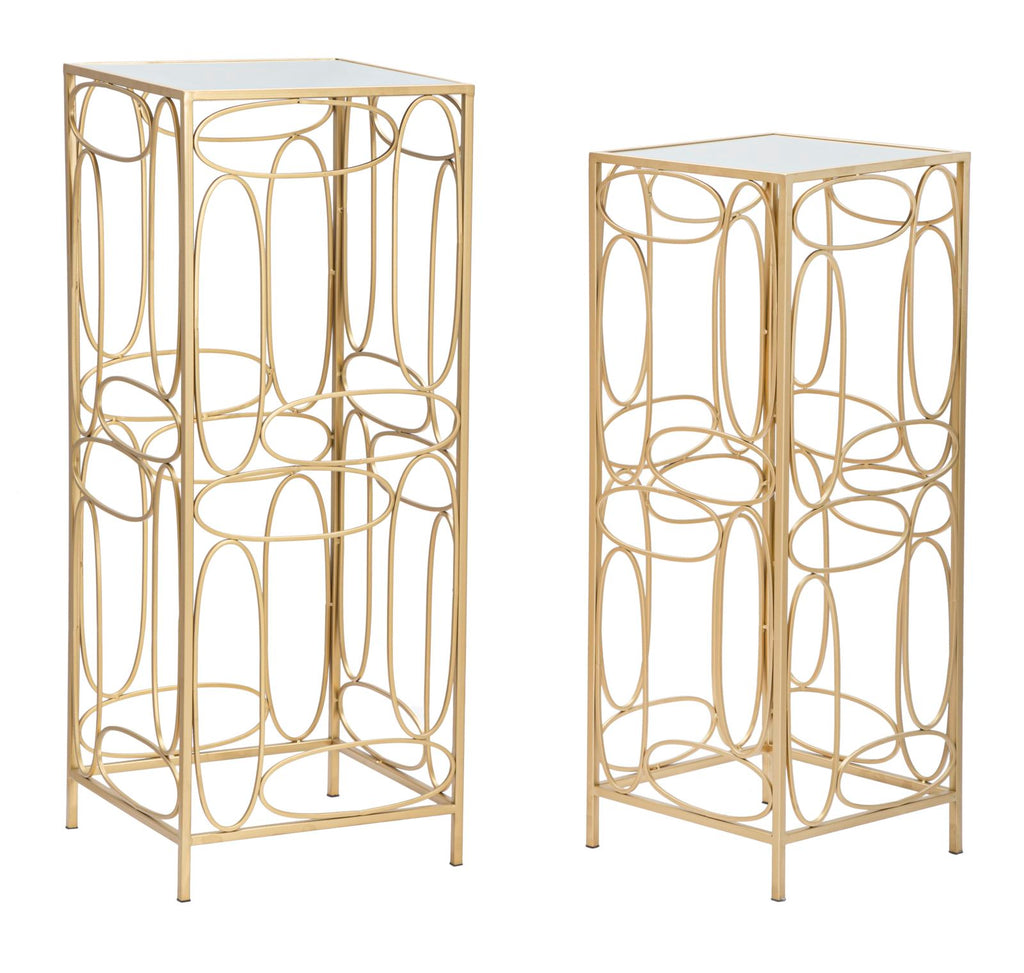 Telefonhalter Bubbles Paar 35x35x90-30x30x80 cm in Eisen und Gold und Silberspiegel
