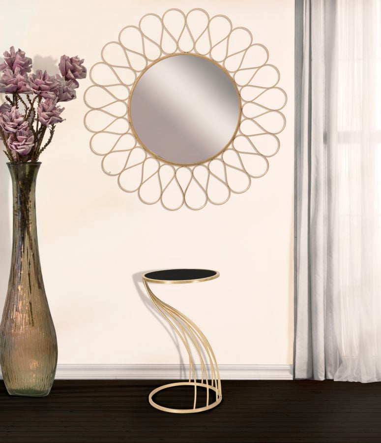 Telefonhalter Flush Ø35x60 cm aus Iron MDF und Black and Gold Mirror