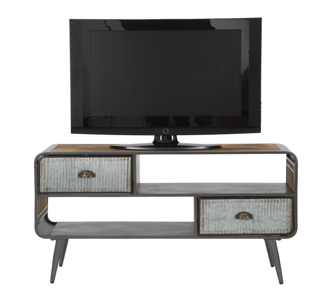 TV-Ständer aus Metall und Holz mit 2 Regalen und 2 Schubladen. Die Illinois-Linie ist vom coolsten Industriestil inspiriert. Eisen und Holz bilden zusammen einen starken und wirkungsvollen Kontrast