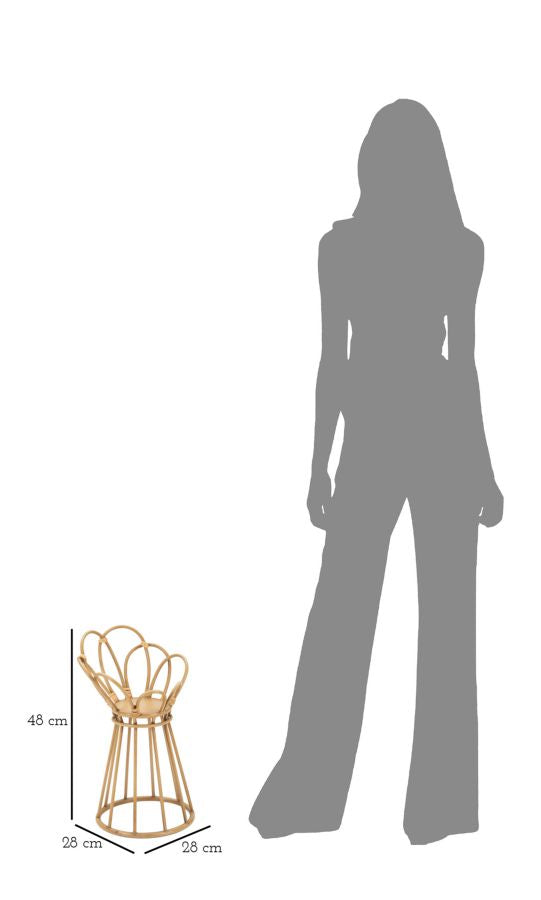 Questo portavasi rotondo in metallo è un oggetto elegante e raffinato, perfetto per aggiungere un tocco di stile alle tue piante. Le finiture in rattan gli conferiscono un aspetto naturale e invitante, mentre il suo design richiama la forma di un fiore, rendendolo ancora più affascinante. Sarà l'accessorio ideale per valorizzare i tuoi fiori e piante preferite, donando loro un'atmosfera unica e suggestiva.